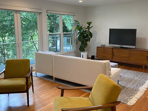 This single-family home is on a quiet street bordering beautiful Rock Creek Park. The home features an open floor plan, lots of light and forest views, driveway space for 2 cars, a front yard, and large decks in the back. The main living space includes a large kitchen, living/dining area with large windows. Master bedroom has a king bed, 2nd bedroom has a loft bed and desk and the third bedroom can be used as either an office or a bedroom with a double bed. The home is fully furnished, including kitchenware, linens if desired and is ready to move in. The interior includes newly refinished hardwood floors throughout, stainless steel appliances in the kitchen, a new washer dryer. There is a basement unit to this home being rented out separately. There may be more tour times available than what is listed, please provide days and times you are available and I will get back to you. We are looking for a renter for about 6 months starting in February and have some flexibility with dates. The rent includes all utilities (electric, water, gas, cable TV and WiFI). The unit is non-smoking and no pets.
