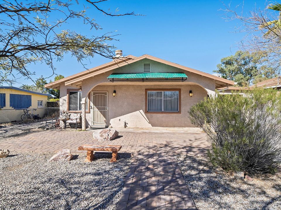 Well maintained 3 bedrooms, 2 full bathrooms, fireplace and fresh paint throughout with new carpets installed. Many improvements - block fencing, front wrought iron fence with 2 double wide gates that can accommodate a Motor Home. The home was newly built in 1985, 30 years later compared to other homes in the same area built in the 40's and 50's, hence no plumbing or electric problems, 3 rd Bedroom can be used as an office. Ceiling fans throughout and covered back patio and shaded cover in front, outside sun resistant screens on all windows. House stays warm in winter and cool in summer, keeping heating and cooling costs low. Large back yard large enough to build a Guest house. Located within walking distance of Reid Park, golfing,swimming and tennis courts, children's Zoo,