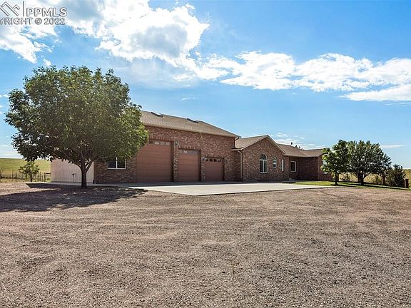 Come home to fields of sunflowers and a tree-lined driveway, and sweeping views of the front range. Enjoy peace and quiet on your own 35 acres just minutes from Colorado Springs Airport, and the conveniences of Powers. Walk in to vaulted ceilings, open floor plan, stone gas fireplace with lots of natural light. Kitchen has stainless appliances, stone and stainless countertops with a nice breakfast nook and walk out to patio with fire pit. Enjoy a private master retreat on the south side of the home, large walk in closet and beautiful 5 piece bath. The other 2 bedrooms are past the kitchen with their own bathroom and laundry room. Extra loft space above the garage can be used as a game room, office, workout room or storage. Large garage will hold all your toys to include the RV. Equipped with a full bathroom this is a workshop of dreams. Property is zoned for horses. This home was build by a custom home builder, who put top of the line quality thorough out. Do not miss out on owning your own slice of heaven. (4th bedroom/3rd bathroom is the loft above the garage and bathroom in garage, no current closet, but lots of room for one)