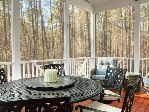 Fall in LOVE with this beautiful "Henderson Craftsman" ranch-styled home in desirable Fearrington Village! This fabulous open floor plan features 5 bedrooms, 3.5 baths and will accommodate family, guests, and/or additional office space. The stylish family room has cantilevered glass doors that open to a lovely screened porch and overlooks the secluded, heavily wooded back yard. Owners have upgraded appliances, fixtures and customized finishes in this home. The floored attic has 4 separate areas for all of that needed storage too! See Special Features list in MLS for additional information.