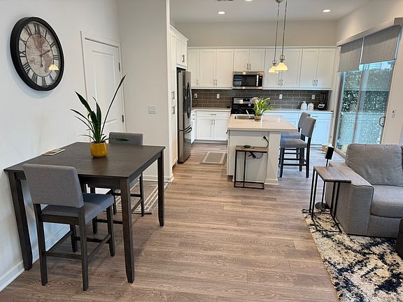 This modern home features three bedrooms, two and a half baths with an open-concept floor plan, cozy wrap around backyard with large sliding glass doors, dedicated laundry room, and two car attached garage. No attached living-space walls; only the garage shares an attached wall with the neighboring unit. The home features high ceilings, upgraded recessed lighting and dimmers throughout. Windows feature professionally installed Bali window treatments and tint on all northeast side windows. Equipped with smart thermostats and doorbell camera. The kitchen showcases quartz countertops with full backsplash. Samsung refrigerator with ice/water dispenser and Samsung steam washer and dryer included in rent. There is a balcony off an upstairs bedroom. The garage is equipped with large overhead storage and a 220v outlet for electric car charging. Pets welcome upon approval. The master planned community of Bedford offers an exceptional lifestyle with two separate large community areas with multiple pools, a hot tub, lovely BBQ areas, two private dog parks, a gym, grass areas, multiple play areas for the kids, community events and more! The Bedford neighborhood is conveniently located off the I-15 near shopping and dining, including The Shops at Dos Lagos and is walking distance to the recently opened Amazon Fresh grocery store and other restaurants and shops.
