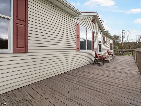 Beautiful and Totally Renovated! This awesome 27x48 manufactured home is on a full walk out basement and is taxed as real estate. Situated on 7.12 acres with approx 800' of road frontage and 4.5 acres in woods is located in a fabulous, peaceful country area. Updated features include new flooring throughout, freshly painted throughout, all new light fixtures, both bathrooms completely gutted and replaced, 6 new windows, hardware and counter tops on kitchen cabinets, stove & refrigerator all in 2024, new $6,500 iron treatment and water softner in 2024, mostly all new plumbing, and 12 ton limestone on the driveway. Huge wrap around deck recently stained and basement walls have been painted inside and out. Easy to finish full walk out basement is plumbed for a third bathroom. There's a Brunco wood burner in the basement that is not currently hooked up but the pipe is there. Outside you'll find a 2 car, quonset hut type garage with cemented floor and separate electric service. Enjoy life in the country complete with lots of wildlife and 2 tree stands for hunting! Less than 10 minutes to Atwood Lake, and 30 minutes to New Philly, Dover, and Canton. Immaculate condition with Immediate possession!