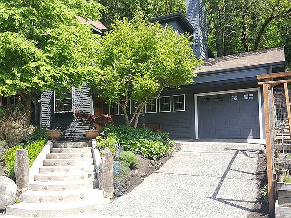 Custom architectural designed home has many magical features,upper loft w/skylight,reclaimed building(antique)materials through out.Leaded & stained glass.Tulikivi stove w/electric & wood burners.Private guest quarters on main level has it's own climbing wall & Built-in murphy bed.Multi levels create stunning living spaces & private hideaways. Private deck area~chicken coop~EZ care yard. Near schools~shopping~eateries~trails~bus stop