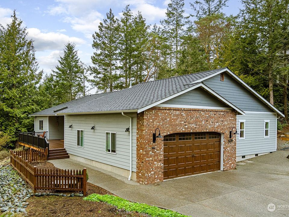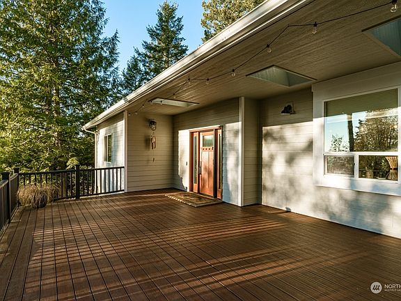 Nestled near the highly desirable Pointe Place Neighborhood, this stunning single level 4 bed/2.5 bath home is sure to impress! Enter into soaring ceilings w/skylights, fresh paint throughout & real hardwood flooring. Features two primary ensuites with large closets, breathtaking views of the San Juan Islands & Olympic Mountains. Chef’s kitchen features 6 burner THOR gas range w/pot filler, SubZero fridge/freezer, farmhouse sink w/reverse osmosis filtration/disposal & abundant storage space. Shaker cabinets & white quartz countertops throughout entire home. AC/gas heat w/auto-start whole home gas generator. Multiple covered patio spaces w/Trex decking, skylights & gas hookups for year-round enjoyment. Xtra tall garage w/separate room.