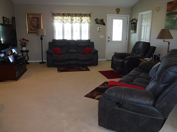 Well-kept and inviting 3 bedroom, 2 bath home on 1.64 acres. Home opens to spacious living/dining combo with vaulted ceiling and lovely Plantation Shutters. Kitchen with lots of cabinets, eat-in bar, pantry, oven/range, microwave and dishwasher. Master bedroom with carpet and walk-in closet and master bath with his/her sinks, garden tub and separate shower. Additional bedrooms are nice-sized with carpet. Guest bath with tub/shower combo. Nice heated and cooled sun room area with nice view of backyard. Screened porch area off of garage. Front porch. 2-car garage, plus detached double covered carport. 2 storage sheds. Fenced backyard. Nicely landscaped. Koi pond. Above ground pool (seller will remove if buyer does not want). NOTE: AC is all electric and approx 2 years old. Great move in ready home with a lot to offer. Call today...