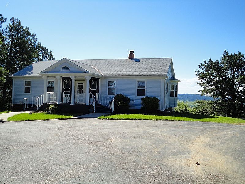 It doesn't get much better...but wait! Fantastic view of hills amid pines with privacy at the end of a lane....just beyond the city limits. This home has much to offer. Open entry with large livingroom. Spacious dining room with baywindow and french doors onto an all season enclosed porch. Kitchen provides ample cabinetry & space. Master has walk-in closet plus walk-out to the porch. What a way to start your day! Lots of roomy closets throughout. Foyer has open staircase to basement. Lower level includes wetbar, stone fireplace, bdrooms, bath,walkout to large cement patio plus unique feature of a cool room or cellar. Garage has unique feature as it has a loft aove the garage for storage and another garage below that has been workshop with woodstove for heat. The views from this home are breath-taking. Please call Cindy Guthrie at 484-1032 or email cindyguthrie@rushmore.com for additional information or to schedule a showing.