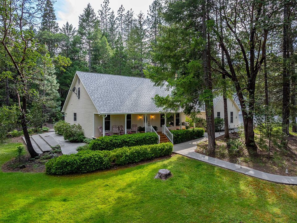 Nestled in the privacy of the trees on 5 acres, this 2,713 sq. ft. custom home features 4 beds, 2.5 baths, a living room, family room, and large bonus room that could be a game room, gym or theater. The split floor plan features 3 beds on the first floor including the large primary suite with large bathroom and walk in closet. The kitchen features custom cabinetry topped with granite/tile counter tops and a gas range. Off the back of the home you'll find a large deck with a screened in room where you can enjoy dinner while watching the wildlife. Attached to the home is a 2 car garage as well as the detached 900 sq. ft. shop which provides ample room for hobbies, projects, and parking. Shop could possibly be converted into an ADU under recent changes to county zoning regs. 18' X 36' RV storage structure. Approx. 12 GPM well with new well pump in 2024. Large attic storage above home and attached garage. Seasonal creek. New Roof on home in 2023! Just 15 minutes to downtown Rogue River.