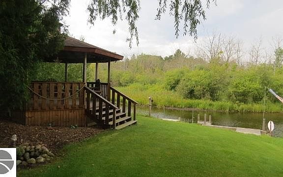 Benway Lake-Green River frontage with this amazing property! Have it all with like new log sided home w/new roof, skylights & freshly painted, gas FP, central air, covered front deck, back yard deck w/retractable awning, generator, master suite, walk in closets, large pole barn w/part sectioned off insulated & heated man cave-work shop, second drive through pole barn, 2 perma docks & beautiful gazebo w/electric at waters edge, views down the lake & up the river & Mohrmann Bridge. Great fishing lake & gives you boat access to Interemediate Lake. Beautifully landscaped 1 1/2 acre yard & the list goes on.