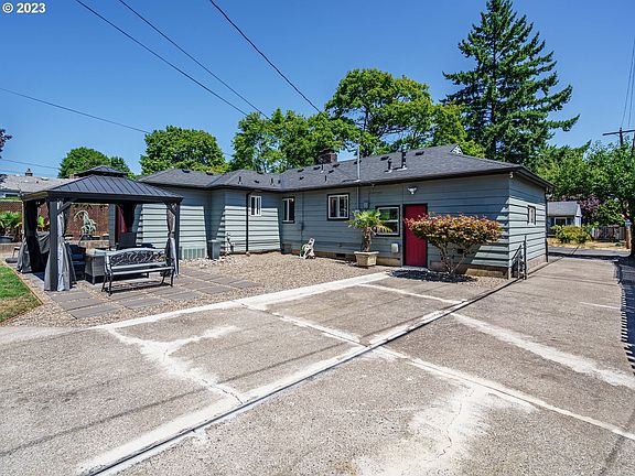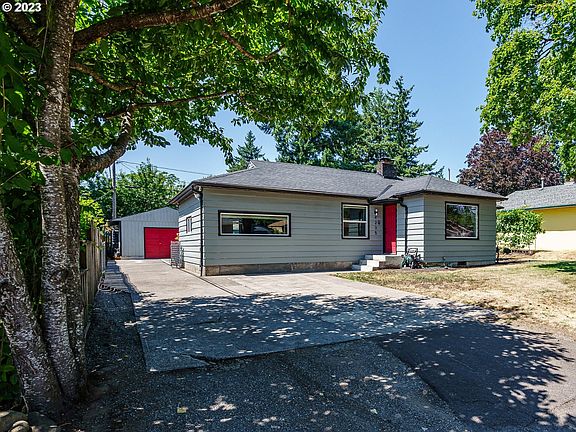 Live-Love-Work In & Out in this One Level PDX Gem with great space to relax, entertain or work from home. Functional 3bd/2ba layout offers an extra family room that can be transformed into your entertainment hub, workout studio, hobby room or home office space. Mid-Century Modern Feel with cozy period features. Living rm with built-ins and fireplace opens to a dining room and hardwood look laminate floors dominate the main level. Trendy retro kitchen is just off the dining room. Wake up in a peaceful Primary Suite with French Doors to a patio and enjoy your cup of joe under a gazebo. Versatile Large yard has many possibilities for raised bed garden, dog run, summer yard games or play area. Detached garage is oversized, fully finished and insulated and could make an extra fun or exercise-cave since the property offers ample parking for cars, boat, trailer or a camper. Stroll around the nearby Earl Boyles Park with your pup or enjoy the Community Garden. New Holgate Library will be the community center staple once re-opened in summer of 24. Check out this Gem today :) [Home Energy Score = 8. HES Report at https://rpt.greenbuildingregistry.com/hes/OR10220118]