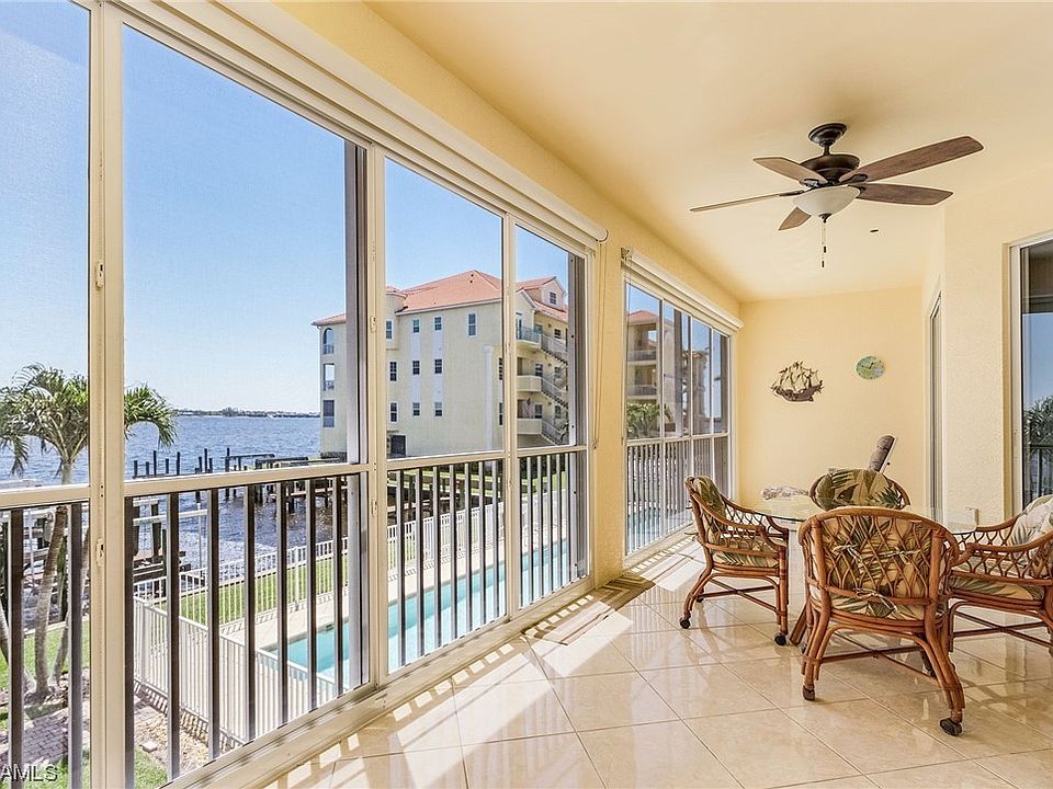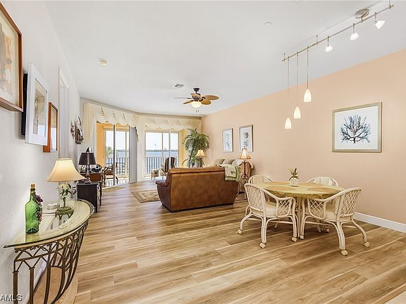 This Stunning condo is sold TURNKEY and Mint Condition! It truly is a Must See!!! This 3 bedroom, 3 bath condo features great room floor plan that will accommodate all your entertaining needs with family room overlooking out to the Marina, large pool and stunning views of Caloosahatchee river. Condo offers formal dining room and an eat-in kitchen with lots of cabinets. Newly installed laminate flooring throughout! The primary bedroom offers amazing views of the river and sliders to the screen patio and primary bathroom offers separate shower, bath, dual sinks and spacious walk-in closet. Enjoy beautiful Florida weather and all your activities in this this resort style gated community with lushes’ grounds offering two Heated Pools & Spa. One is a Lap Pool and other is lounge pool.
