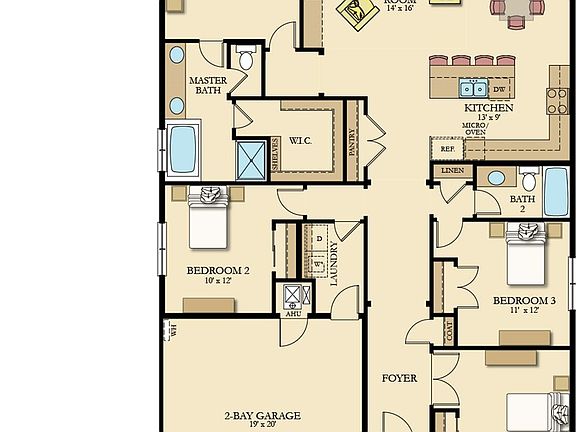 - Quartz, Soaking Tub, Kitchen Island, Pantry