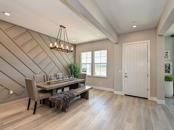 Residence 2 is a one-story home with an open layout. The grand entry is flanked by the study and a formal dining room. One bedroom and a bathroom are also located near the front of the home with the study also available as a fifth bedroom. The wide entry hall opens onto a spacious great room separated from the kitchen by a huge island with a sink and plenty of room for seating. A covered patio can be accessed through double sliding glass doors from the great room. The primary suite is tucked privately behind the kitchen and provides a relaxing retreat with its freestanding tub, walk-in shower and a walk-in closet nearly the size of a bedroom. A convenient private hallway connects the kitchen with the dining room and also provides easy access to the pantry, garage, drop zone, laundry room and two more bedrooms, each with their own walk-in closets.