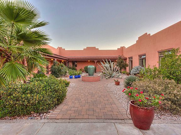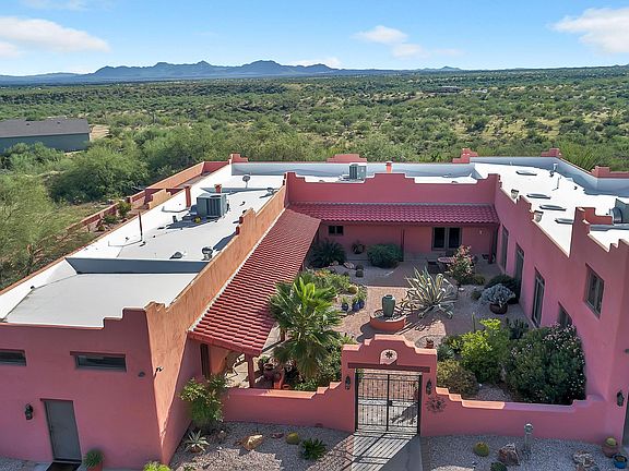 WELCOME to this Stunning Classic Hacienda Style Home, a Gem in the Desert. This Magnificent Home Boasts Majestic Panoramic Views of Southern Arizona Mt Range; Timeless Balance of Nature & Home. Home is Steel Framed/Straw Bale; Super Energy Efficient & Elegant. The Moment you Enter the Courtyard & Patio Paradise; View the Immaculate Landscaping w/Water Feature; Entrance to Great Room, w/Saltillo Tile, Fireplace, Gorgeous Design Touches, Peaceful Color Palate. Beautiful Entertaining Kitchen/Tasteful Granite Counters w/Awesome Breakfast Bar, Kitchen Dining Area w/Morning Light/Access to 2 Patios, Custom Alder Cabinets, Island, Commercial Refrigerator, 6 Burner Range, Double Oven. Dining Room is Formal Off Kitchen w/Sliders Opening to Courtyard for Entertainting Family & Friends. More Master Suite w/ Private Entrance, Cozy Fireplace, Master Retreat, Walk in Closet. Master Ensuite is Inviting w/Spa Setting, Jetted Tub, Dramatic Glass Block Shower, w/Separate Patio. Three Bedrooms on West Wing, Split Plan, All w/Own Ensuites & Entrances. Step out onto Wrap Around Patio from the Great Room; The Views & Serenity are Breathless. Extra Space to include, 2 Immaculate Basements for Storage. Separate Garage may fit up to 6 Vehicles, Storage, Finished Interior, Room for Work Area. 4.79 Acres of Infinite Possibilities. *Peacefull Setting, Gorgeous Mountain Views; *Make the Offer; *This Special Home & Space Awaits You*