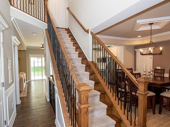Magnificent custom built home with so many extra features. Specially built large front porch and back patio with ceiling, 2796 sq ft of beautiful house: 4 bedrooms, 3 full baths and 1powder room, finished walkout basement and 2 car garage...and so much more... 2 story foyer entrance with chandelier leads to an large dining area with gorgeous wood floors, into the kitchen area with white cabinetry, stainless steel appliances, high grade granite countertops and massive granite island with plenty of seating. The kitchen is open to a large family room with a propane fireplace, beautiful coffered ceiling, crown molding and hardwood flooring. Next is either a formal dining room or formal living room, whatever you choose it to be! A nice sized powder room is on the first floor. Upstairs are 4 large bedrooms and hall bath. The primary bedroom suite is lovely, with large bathroom with shower & custom tub. Lots of closet space in every room. Laundry is on 2nd floor. The finished, walk-out basement has plenty of space, with a bar for entertaining, full bathroom with shower, and another additional room. Large, fenced level yard with the huge covered patio with lighting for all family gatherings and plenty of room for the kids to play. Mechanicals only 4 yrs old : HVAC,Water Heater with 2 zones,Roof, S/S Appliances, Certain Teed siding. Beautiful home in nice quiet neighborhood. A must see!