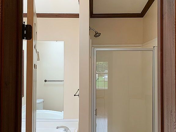 Handicap accessible manufactured home with new laminate flooring throughout the living space and bedrooms. The home features large closets, plenty of counter space, and a spacious deck and back yard.