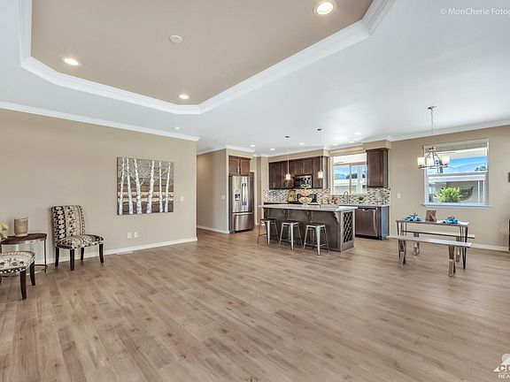 Incredible forever views await you! A true desert lifestyle enjoying all you can play golf in your own backyard. This beautifully appointed new 3bd/2ba 1,539 SF home - 2 Car Garage. Numerous upgrades which includes energy efficient kitchen appliances. Portola Country Club is an active 55+ community and offers various clubs and social events. YES GOLF IS included, not to mention 3 swimming pools/spas, tennis, pickle ball and more. Close to freeway, fine/casual dining, shopping, entertainment. Curious to see more like properties within our incredible community, I can arrange that for you! Reverse mortgage option available A home that offers you 3 choices: STAY-PLAY-OR-INVEST