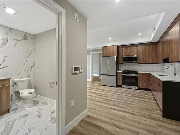 Discover The Keystone Building, a dazzling brand-new 18-unit residence situated in the vibrant 6 corners area of North Bergen. Art deco lobby and hallways. This unit boasts a beautifully designed, luxurious space with a generously sized bedroom with it's own bathroom a versatile den that can serve as an office or guest room and additional bathroom. The kitchen features sleek quartz countertops and high-end appliances, complemented by an open floor plan that seamlessly integrates dining and a spacious living area. In addition the unit featrues central air, washer/dryer, window blinds, internet ready, and a security intercom system. Beautifully designed lobby and hallways. Experience unparalleled convenience with a dedicated workout room on every floor, catering to cardio, strength, and stretching activities. Access to NYC is effortless, with the bus stop steps away and the Light Rail Station just a few blocks from your doorstep. Benefit from a designated parking space in the attached garage, and relish the proximity to restaurants, stores, major highways, and The American Dream Mall. Seize this opportunity call today and learn about the exclusive incentives for being among the first occupants of this remarkable building. Please note that tenants are responsible for utilities.
