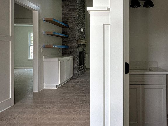- Description: Stone fireplace + built-ins, vaulted ceiling