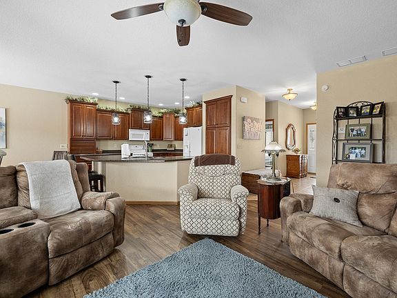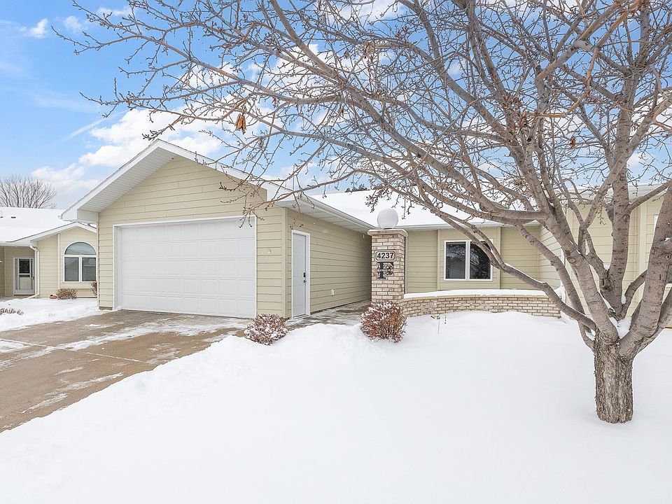 Listed by Jeremy Kahler, KWBH, 605-381-7500. Move-in ready ZERO ENTRY townhome in the quiet Carmel Point subdivision! *Thoughtfully designed, this one level home allows for easy accessibilitiy *Open concept main living space- a comfortable living room flows into the kitchen and dining areas making entertaining a breeze *9' tall ceilings, LVT flooring and great natural light throughout *Corner kitchen has beautiful cherry wood cabinetry with soft close features, white appliances that stay with the home and a 6-chair breakfast island with undermount sink *Cozy dining area with large window overlooking the back yard, plus access to the covered patio *Master bedroom in back corner of the home with a comfortable bedroom, an ensuite 4-piece bathroom with jetted tub and a private walk in closet *1 additional bedroom, 1 full bathroom and a main floor laundry room with storage cabinetry complete this home *Attached, finished 2-car garage has a pedestrian door to the front yard, great workshop space and access to the mechanical room *Private covered back patio for entertaining, accented by mature trees and beautiful annual landscaping maintained by a sprinkler system *Through the HOAs, you can enjoy the neighborhood only walking paths, access to the swimming pool and a club house, lawn care, snow removal and more! Located less than 1 mile from Arrowhead Country Club & Golf Course, and 1 mile from local schools, your next home awaits- call today!