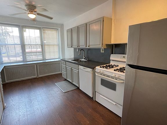 Located in the heart of Mayfair, this Apt located on the 1st floor, it has 2BR/1Full bath. Laminated wood flooring thruout. Walk into main floor comes a living room open floor into kitchen area with kitchen appliance and a fridge. There are 2 good size bedrooms and a full bath. Kitchen is located in the center between two bedrooms. Own set of Washer/Dryer included, located in basement. One car indoor garage accessible from ground level at rear. Good credit stand , proof of income, a Must! Feel free to text or email inquiry.