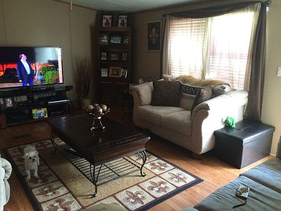 Country living at it's best. Beautifully kept 2009 double wide mobile home on approx. 1 acre of tree shaded lot . The trailer is raised & flood insurance less than $400 a year and transferable - A 48 X 10 covered patio is attached to the back of the home and the backyard has an almost new 10 x 12 shed This house even has an alarm system. Seller will pay $2000 towards buyers closing costs with an acceptable offer,