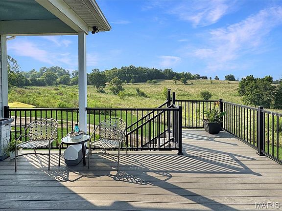 A Slice of Country Paradise! Sitting on 7+- acres, this charming cottage serves up peaceful tranquility in the rolling hills of Franklin County Missouri. As you turn down the driveway of the highway, you wind through the pasture to find the 1600sqft home with front porch, walkout lower level, large rear deck, & covered porch. The Home offers an open layout with divided bedroom floorplan, main floor laundry, & finished lower level. From the front porch, you enter through the foyer to the living room which leads to the covered porch and is open to the luxurious kitchen with island & eat-in bar area. The dining room is nestled off the kitchen & offers great views of the open fields. The living room connects to the main hallway with 2 spare bedrooms & full bathroom. Off the kitchen you'll find the hallway to Laundry Room, Lower Level, & Primary Bedroom Suite. The suite features a large walk-in closet with window & bathroom with soaking tub, walk-in shower, & double vanity. The mud room has the laundry, a half bath, & access to the deck & the staircase to lower level. The basement is finished with a 4th bedroom, a bathroom with laundry setup, kitchenette, family room with nook, & walkout to lower patio. This is a perfect property for multigeneration living, your dream after-work oasis, mini-farm, or whatever you have in mind. Walking Trails throughout the open acreage afford the you private adventures in nature with bountiful wildlife. Don't Miss This Rare Opportunity!