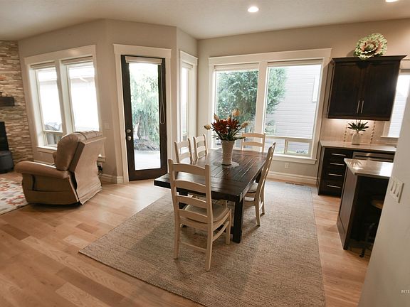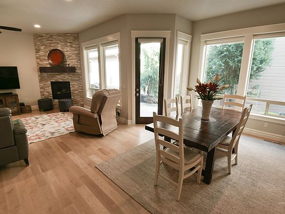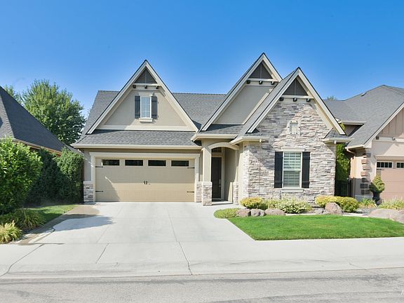 This exquisite residence is located in the heart of Meridian and boasts elegant quartz countertops throughout. It features a generously sized master suite with 9ft ceilings, complete with a spacious master bath that includes an oversized jetted tub and a 12x11 master closet. The home also offers a utility room with a convenient laundry sink and an epoxy-coated garage floor. Designed with energy efficiency in mind, this Energy Star home includes a central vacuum system and oak flooring. The property is complemented by a 27x10 patio space with garden boxes, and the grounds are meticulously maintained by the HOA for added convenience.