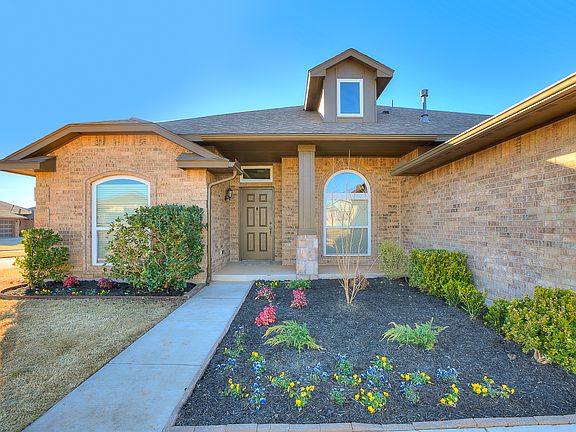 Beautifully updated 3 bed + office, 2 bath home on corner lot in Apple Valley addition. Updates include gorgeous Java hardwood floors in living room/office/hallways, new carpet in all bedrooms & closets, fresh paint throughout interior & front exterior, colorful landscaping, & more. Kitchen features breakfast bar & S/S appliances with brand new range oven. Master bath features large garden tub with separate shower, double vanities, and spacious closet. Office with french doors could be optional nursery, playroom, etc. Home is located in award-winning Moore school district. This home will not stay on the market for long, come see it today!