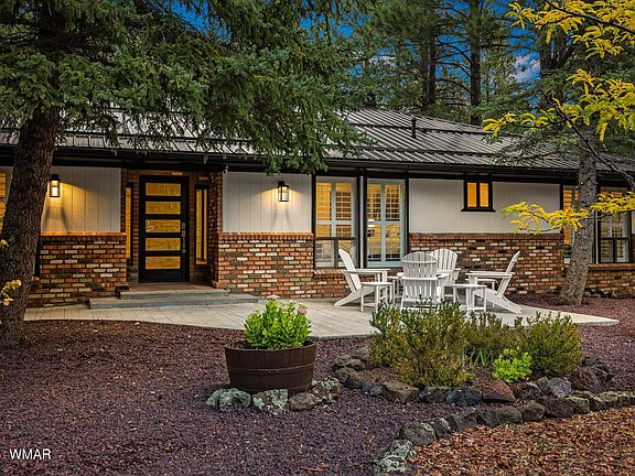 Entertainer's dream cabin in Pinetop Lakes Country Club fully furnished and move-in ready! This modern cabin was fully remodeled inside and out in 2022 with all new wood composite insulated flooring, bathrooms, fixtures, paint, etc, metal roof, A/C, landscaping, additional patios, etc. This single level 3,000 sq. ft cabin has room for all of your family and friends with multiple areas to entertain in including a huge game room/billiards/bar with built in-wet bar and indoor grill along with multiple TV's and skylights, formal living room/dining room, and a family room with a gas fireplace. Master bedroom is huge with a secret door to the gameroom/bar, jetted shower, jetted tub, LED lighting, and a walk-in closet. Glowing wine room with thermostat controlled temperature and beautiful glass French doors. Indoor/outdoor entertaining space with the covered deck boasting built in seating and outdoor bar. Relax on the front patio with beautiful tall pines and a quiet cul-de-sac lot that offers low traffic and privacy. Enjoy all of what the white mountains have to offer - hiking, hunting, fishing, exploring and enjoying the higher 6,800' elevation. Sunrise Ski resort only 25 mins away! This is the mountain home of your dreams! Pinetop Lakes Rec Center Privileges including swimming, hot tub, tennis, pickle ball, sand volleyball, fitness center and multiple activities all included!