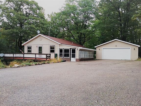 SUPER PRIVATE nearly 8 acres,. Perfect for that Hidden Oasis close to town with A POTENTIAL MILLION DOLLAR VIEW. Located right between Burt and Mullett Lakes. Currently you have seasonal views but just remove a few trees and you could have an outstanding view of Mullett Lake all year long. The home features new stainless stove and refrigerator, New Paint and Flooring on the lower level. An outstanding 3 season Sunroom. The lower level offers a Walkout and the Garage is insulated. The 40 x 16 Pole barn has plenty of room for your toys or a workshop and a 40 x 6.5 lean-to. There is also a 20 x 17 Quonset type building, and a lovely area for a garden.