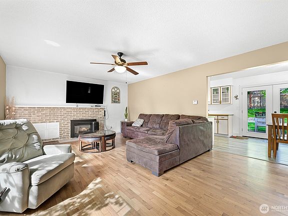 Charming 3BD/1.75BA home with 1,822 sqft of comfortable living space. Features include original hardwood floors, ceiling fans in all bedrooms, deep closets, and a cozy gas fireplace. Kitchen offers stainless steel appliances and flows into the dining area with French doors leading to a fully fenced backyard—perfect for entertaining or relaxing. Includes a dedicated dog run, insulated outbuilding, and alley access with extra parking. Potential ADU or separate detached office. Newer roof and windows within last 5 years. Conveniently located minutes from I-5, Costco, Fred Meyer, and more!