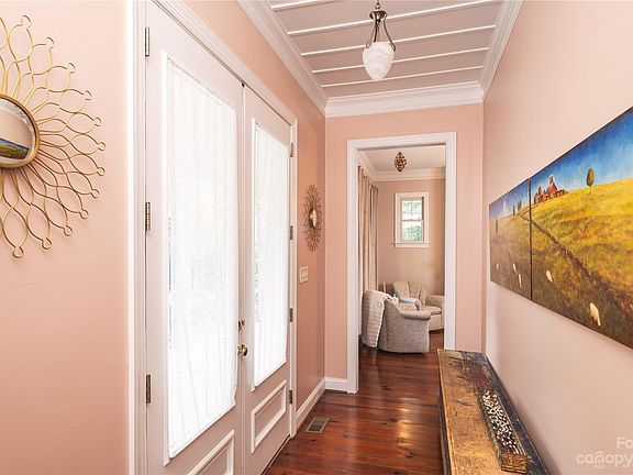 Elegant home that will take your breath away. One of a kind by this builder in the community. Italianate farmhouse style home on a corner lot that is rich in landscaping and oversized front porch. The stunning home has reclaimed heart pine flooring, antique chandeliers, and 10' ceilings with picture molding on the main add a historic touch. Separate living and dining room could be used as an office. Butlers pantry connects kitchen to office/dining room. Open kitchen with island opens to the sitting and breakfast area. Lots of natural light exudes throughtout the home. Enjoy coffee on the screened in back porch. Reading nook upstairs with built ins.Two staircases, one takes you up to three bedrooms including the primary suite while the second takes you to a bed/bonus with a closet and full bathroom over the garage. The primary suite has its own secluded deck off the bedroom and bathroom with a claw foot tub. Convienently located across the street from a community pool and park.