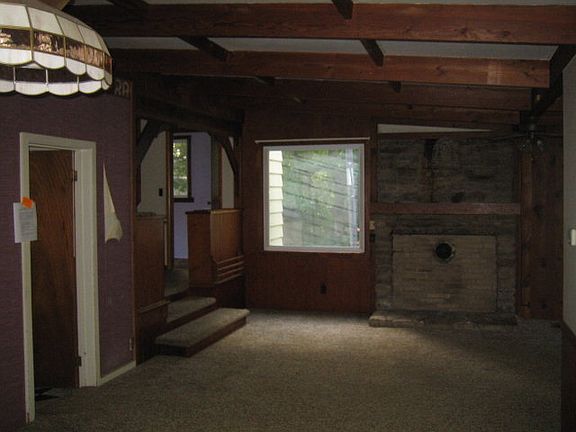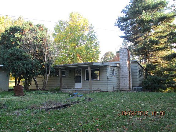 Enjoy country living? Trees? Birdwatching? This home is on a little-traveled road on a partly wooded 2 acre lot. It has a 3-stall carport and 2 storage sheds. The interior has wood beams, a stone wall with a place for a woodburning stove, a built-in bookshelf on the landing above the living room. The basement is partially finished with a door to the backyard. Windows and furnace have recently been updated.