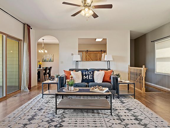 This smashing 5 bed, 3 bath home boasts a Light and Bright, vaulted, open floorplan in southeast Rapid City, with convenient access to the medical corridor. Fresh paint inside, warm and inviting, you will never want to leave! *Three bedrooms on the main floor, with the master en suite with Walk-In closet, situated on one end, and the other two large bedrooms on the other. * Modern personalization throughout! 9' ceilings, barn door, cute painted stair risers, nice sized bedrooms. *Slider walks out to covered deck overlooking large, fenced backyard and oversized patio perfect for cookouts or basketball *Finished daylight basement with additional 2 bedrooms, full bath and plenty of room for ALL the activities. * Main floor laundry and attached 2-car garage, plus storage shed! ** Seller is offering to contribute $10,000 to buy down rate (this could save a buyer over $200/month payment!!!) OR reduce price to $375,000. Call with any questions!