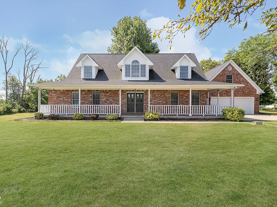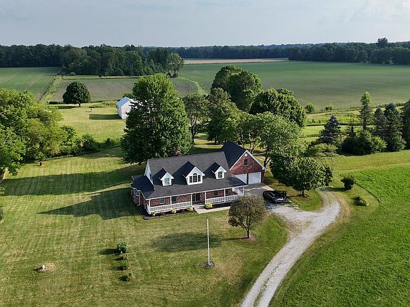 Discover unparalleled privacy and space on this sprawling 10-acre country estate in Hendricks County, a rare gem in the sought-after Mill Creek/Cascade school district. This all-brick one-owner home, built in 1998, presents four bedrooms, three and a half baths, a rec room above the garage and a generous 3,578 square feet of living space. Step inside the new front door to an inviting foyer that opens to both a dining room and a home office/bedroom space. The heart of the home is the expansive eat-in kitchen, featuring a center island, pantry, and breakfast nook. The kitchen flows seamlessly into the spacious family room, anchored by a 2-story stone fireplace, and convenient access to the back patio. Retreat to the master suite complete with a walk-in closet, dual vanities, a jetted tub, and separate shower. The main level also offers a half bath and laundry room with built-in cabinetry. Two additional bedrooms upstairs provide ample space for family or guests, served by a full bathroom. The home has been freshly painted, and the trees surrounding the property have been recently trimmed. Outside, unwind on the wraparound covered front porch or open back patio overlooking the tranquil creek that meanders through the property. Four versatile outbuildings include a 4,420 sqft barn with a shop area featuring concrete flooring, electricity, and an electric heater. The second barn is approximately 1,800 sqft with electricity, partial concrete flooring, and an attached lean-to. The third barn measures 560 sqft with concrete flooring. Don't forget about the small garden shed! These outbuildings offer unlimited potential for hobbies, storage, or a small farm. Additional highlights include a two-year-old furnace, a five-year-old roof, low property taxes, and an oversized (29x27) finished two-car attached garage. Don't miss this opportunity to own a slice of country paradise in a coveted location.