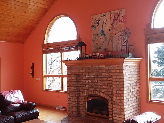 Spacious, beautiful custom brick home with views of Blue Mounds State Park and end-of-the-road privacy. Quick, easy access to 18/151 as well as the Military Ridge bike trail. The main floor has a living room with a fireplace and a 19-foot cathedral ceiling, kitchen with cherry cabinetry and two islands, dining area, guest room, full bath, master bedroom with a full bath, double closet, and walk-in closet, and a laundry/entryway. The loft has a full bath, bedroom, walk-in attic access and a tv area. The walkout basement has a family room with a fireplace and a wet bar, a bedroom, full bath, den, game room, storage and a large seond laundry. The home has 9-foot ceilings throughout and hickory flooring on the main floor. There's a large deck, a three-season porch, a patio, a covered front porch, full brick exterior, a two-car attached garage, and a small garage with an automatic door in the lower level. There is a productive pasture with a spring creek, equiabraid and wooden post fencing, a shelter for livestock and hay, and an automatic waterer.