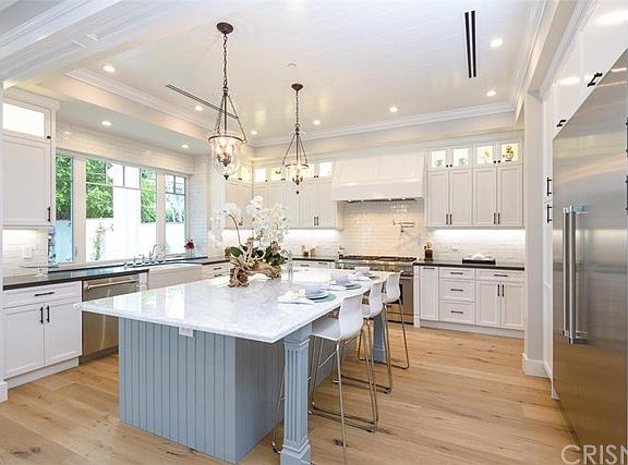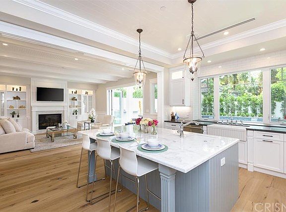 ***Price Reduction*** Stunning brand new 5 bedroom/5.5 bath plus office masterpiece with every amenity imaginable, including a white picket fence out front. The warm entry invites you into an open concept layout featuring high coffered ceilings, wainscoting, plenty of natural light, ample storage, wide plank carbonized oak floors throughout, 3 marble fireplaces and Control4 smart home technology. The fabulous chef?s kitchen has a large Bianco Lasa marble center island with breakfast bar, walk-in butler?s pantry, wine closet and top of the line Thermador s/s appliances overlooking an exquisite entertainers? backyard with spacious covered patio, fully-equipped custom BBQ and dramatic dark-bottom pool and spa with waterfalls. Following the grand staircase up you have 4 beautiful bedrooms, each with en suite baths and walk-in closets (5th bedroom and bath conveniently located downstairs).The romantic master suite has a fireplace, private balcony and 2 walk-in closets. An elegant en suite bath showcases marble tile, a generous double vanity, large Jacuzzi tub and a master rain shower for two.