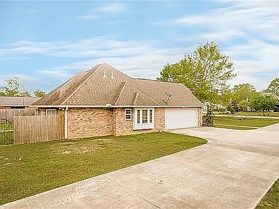 Gorgeous home in Jefferson Court on 1 acre! Friendly and quiet neighborhood. Fenced in back yard, in-ground pool with new liner, beautiful outdoor kitchen under huge covered concrete patio. 2 car garage attached to house and additional garage/storage attached to patio. Large master suite with his/her vanities, jetted tub, separate shower, walk-in closet and storage cabinets. Kitchen: granite counters, bar seating, breakfast area and connects to formal dining room. Double tray ceiling and gas fireplace in living room. Flood zone X (not a flood zone).