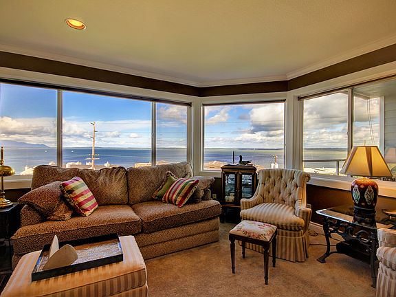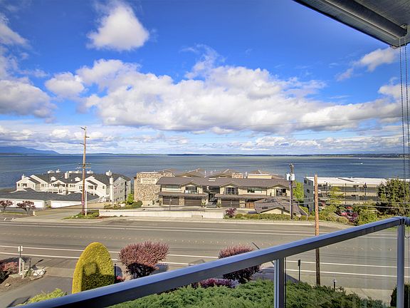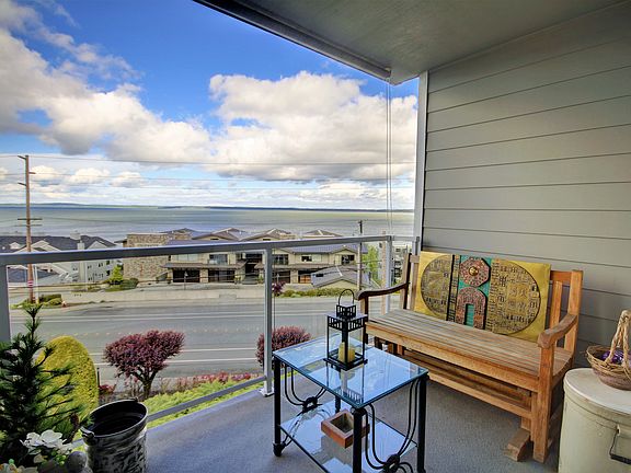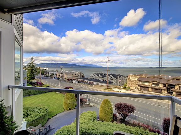 Enjoy expansive bay views & gorgeous sunsets from this stylishly updated 3rd floor unit in sought-after 55+ South Hill condo! Spacious 2 bedrm unit has been redone w/luxury finishes & sophisticated updates thruout. Kitchen has granite counters, soft-close drawers, high-end stainless steel appliances & more! Gas FP w/slate hearth & Venetian plaster surround. Huge master, updated bathrms, ample storage, 2 decks! Level entry, no stairs. Storage unit in secured garage. Walk to Fairhaven & Blvd Park!