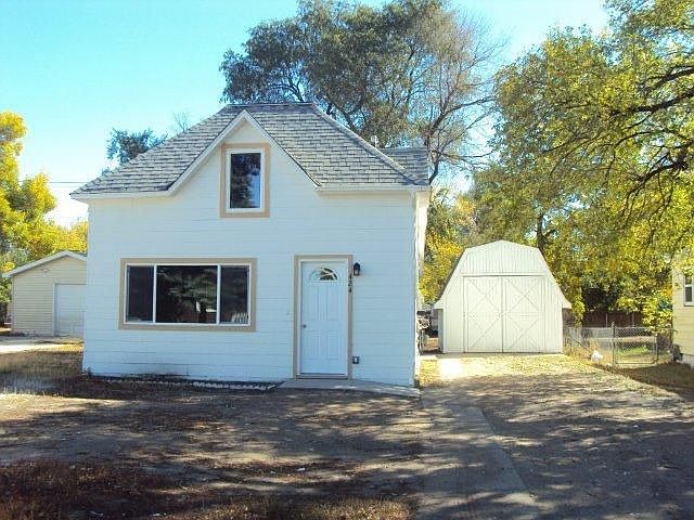 Cute 1 1/2 story home that has been completely remodeled after the flood. One bedroom on the main floor with two upstairs and 2 baths. New cabinets, appliances, furnace, hot water heater, electrical and central air makes this next to new home a perfect match for a first time home buyer. The upstairs features 2 bedrooms with nice sized closets. The laundry off the kitchen has French doors to close it off. Kitchen is open to the living/dining space. Has white cabinets and a 3/4 bath off the kitchen as well. Master bedroom features an extra large closet and full bath. The barn shaped storage shed could hold 1 car ifdesired but is an ideal location for all of your tools, lawn equipment, toys etc...