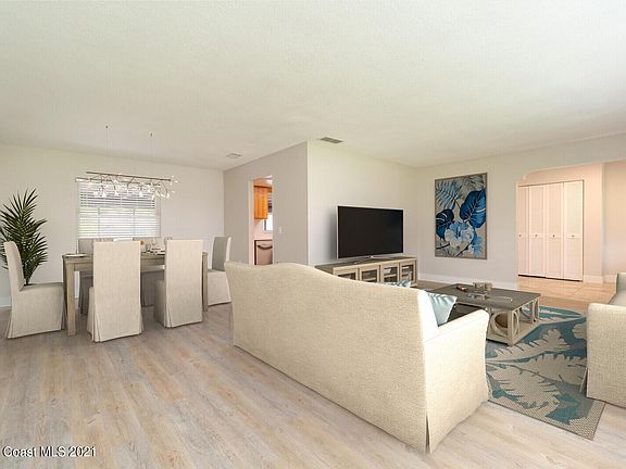 The heart of Indialantic 3/2/2 recently renovated, pool home on quiet street perfect for outdoor living.Take your golf cart, walk, or bike to beach, river, restaurants, Elementary & Junior High.Stunning tropical backyard, almost 1/3 acre w/oversized screen lanai and brick paver BBQ patio. This home is move in ready with updated bathrooms and huge walk in master closet.Renos include ALL NEW luxury vinyl plank flooring, berber carpet in bedrooms, French doors, interior and exterior doors, shaker baseboards, quartz countertops, stainless kitchen appliances/sink, plumbing fixtures, electrical outlets/switches, interior/exterior lighting fixtures, interior/exterior paint, cabs/sink in laundry.Roof 2019, AC/water heater 2017, double pane vinyl windows.Flooring & quartz in stock at local stores.