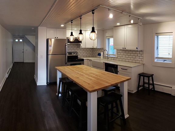 Recently remodeled side-by-side duplex, located 1 block from downtown Hudson, and 2 blocks from the St. Croix riverfront, with views of both. New kitchen with stainless appliances, farmhouse sink, and quartz and butcherblock countertops; new bathroom; new flooring throughout; laundry in unit. 1 bed + loft area, 1 bath, 2-story unit, with kitchen, living, and laundry on main level; bedroom, bathroom, and loft on second level. Small deck with patio door on second level, leading to the shared wooded backyard. On-street parking only. Summer lawn care is managed by the landlord. Winter snow care is managed by tenants. Utilities covered by tenant: electric, gas/heat, trash, cable/internet. Utilities covered by landlord: water and sewer. Tenant responsible for utilities including, but not necessarily limited to, trash, heat, and electricity. Tenant responsible for snow removal. Water/Sewer included with rent. On-street parking only. Smoking is strictly prohibited on the property. No pets allowed. Application/credit check fees and non-refundable deposit-to-hold are required for serious applicants. 6-month - 18-month lease duration considered.