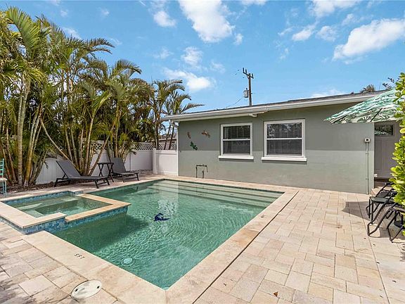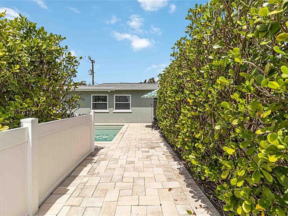 This beautifully restored, income producing property can be yours! Welcome to Island Delight on Anna Maria Island. Offered TURNKEY furnished with an active rental history and brand new roof, this property provides flexible options to enjoy paradise. Primely located just a few blocks from the turquoise waters and powdery sand of the Gulf, you can enjoy the the island's serene beauty whenever you wish. You'll love the private, heated, saltwater pool and spa as you walk through the gates of this charming home--adorned with beautiful pavers. Inside you'll find an inviting space with a large kitchen equipped with all new stainless steel appliances, kitchen cabinetry and fixtures. The granite countertops are a nice touch with bar seating at the peninsula. The bathroom is conveniently positioned between the two spacious bedrooms. The living space boasts an open concept to the spacious dining area, and an exterior door that leads out to your secluded and fenced deck area. The grand back yard space/deck is equipped with a sitting area, grilling space, outdoor shower and adorable shed for all your beach gear. The parking pad is large enough for two vehicles which makes parking on the island seamless! The community of Seaside Gardens has a low monthly HOA fee that includes water which makes owning a pool very cost effective. Even more, you have access to tennis courts, pickleball courts, shuffleboard, basketball court and a playground! With its unbeatable location and income potential, this property is an exceptional investment opportunity.