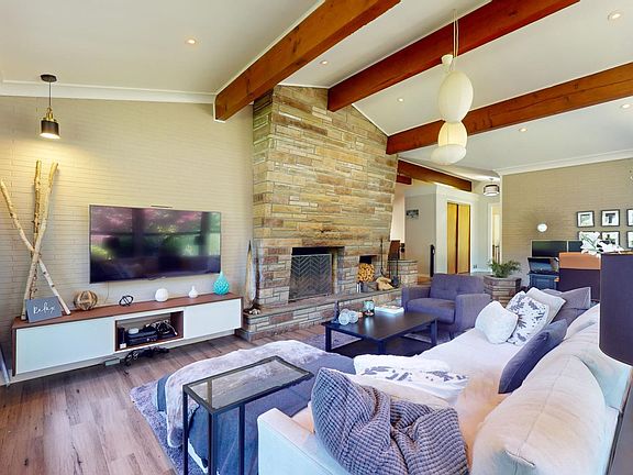 Welcome to 424 6th Ave, Bellmawr, NJ – a stunning mid-century style rancher that seamlessly blends timeless charm with modern upgrades. This single-story gem offers 3 bedrooms, 2.5 bathrooms, and a plethora of features designed for comfortable living and entertaining. Step inside to discover an open layout accentuated by large wood beams running throughout the house, adding a touch of rustic elegance. The sunken living room is a cozy haven with high vaulted ceilings, recessed lighting, and a wood-burning fireplace, perfect for those chilly evenings. The heart of the home is the newly updated kitchen, boasting quartz countertops, sleek new appliances, and ample storage space. The entire house has been freshly painted and features beautiful hardwood floors, creating a warm and inviting atmosphere. Retreat to the master bedroom, complete with an en-suite master bathroom for your privacy and convenience. Two additional bedrooms and a full bathroom ensure plenty of space for family and guests, while a half bath adds extra convenience. Entertainment options abound with a large game room and an expansive outdoor area. The screened-in porch with a dining area is ideal for al fresco meals, while the in-ground pool offers a refreshing escape during the summer months. The large outside entertaining area is perfect for hosting gatherings and creating lasting memories. The yard is fully fenced with over a half acre corner lot. Recent updates include a new HVAC system, ensuring year-round comfort, and newly remodeled bathrooms that exude modern sophistication. Additionally, the large unfinished basement leaves many possibilities. Don't miss the opportunity to make this exceptional mid-century rancher your new home. Schedule a showing today and experience the perfect blend of classic style and contemporary amenities at 424 6th Ave, Bellmawr, NJ.