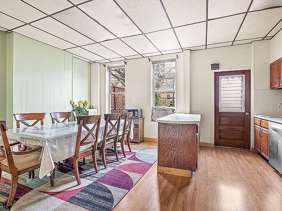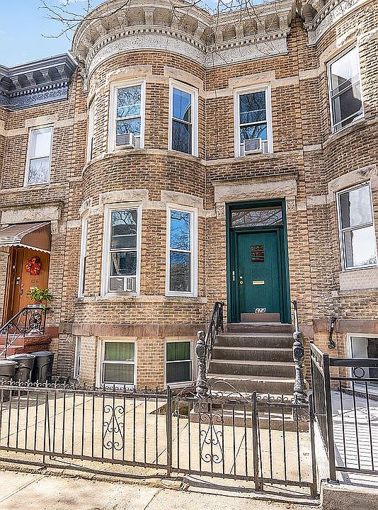 Available for the first time in decades, this 2,730-square-foot building offers two levels of living space with four bedrooms, two baths and two kitchens. The 1901 building is filled with lovely prewar details, including hardwood floors, tall baseboards, and a stately staircase wrapped in wood wainscoting. The lower unit opens with a large living room with bay windows and an oversized eat-in kitchen featuring stainless steel appliances and access to a large deck and expansive rear yard. The upstairs unit offers a similar layout, while the full-height, windowed basement provides room to grow with excellent storage space, laundry, and access to the front and rear yards. A beautiful brick façade and gated forecourt complete this 20-foot by 50-foot property.