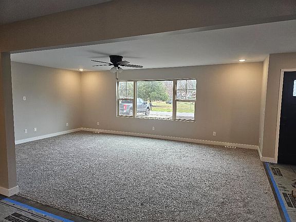 This is a newly re-constructed home that comes with a builder's warranty! Featuring 3 bedrooms and 2 bathrooms, open concept living and kitchen area, a half-acre quiet wooded corner lot, and 2 car garage, new concrete patio, cabinets with granite countertops, a large single basin kitchen sink, kitchen island, and craftsman style doors and trims. S.S. KITCHEN APPLIANCES INCLUDED The kitchen, bathrooms, dining room, laundry room, and hallway have plank flooring. Bedrooms and living rooms have plush and comfy carpets. The reconstruction includes all new roof, siding, windows, doors, exterior concrete, insulation, drywall, electrical system including panels and wiring, plumbing system, HVAC system, flooring, interior doors, electrical fixtures, plumbing fixtures, and more.