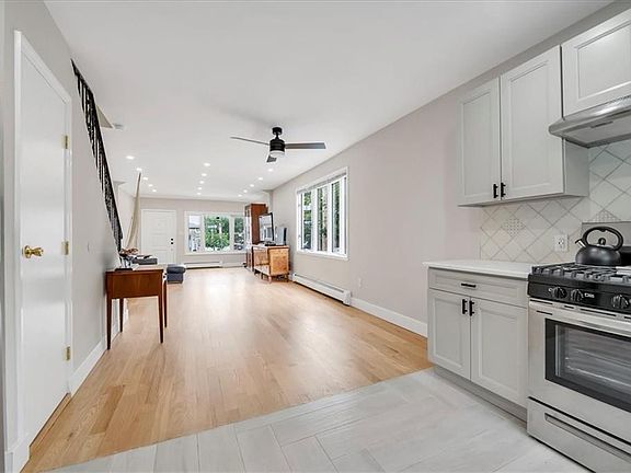 Come into the epitome of modern comfort and elegance with this newly renovated 1-family home, featuring 3 bedrooms and 2 full baths, nestled in a tranquil neighborhood. A highlight of this residence is its new boiler and instant hot water system, ensuring efficiency and convenience at every turn. Upon entering, the main level welcomes you with two charming bay windows that bathe the space in natural light, creating a bright and airy ambiance. The open-concept floor plan boasts hardwood floors throughout, complemented by all-new high-hat lighting that illuminates the first floor living spaces with a warm and inviting glow. The kitchen is a chef's delight, equipped with sleek cabinetry, quartz countertops, and stainless-steel appliances, perfect for culinary creations and entertaining guests. Adjacent to the kitchen, the dining area flows seamlessly into the spacious living room, offering a cohesive space for relaxation and gatherings. Upstairs, three well-appointed bedrooms provide peaceful retreats, each featuring tile floors, ample closet space, and windows that capture picturesque views of the surrounding landscape. It also boasts a newly renovated spa-like bathroom with modern fixtures and finishes. A finished basement adds versatility to the home, serving as a bonus area for recreation, a home office, or additional living space to suit your lifestyle needs. Outside, a landscaped yard provides a serene backdrop for outdoor activities and relaxation, while a private carport ensures convenient parking. With its thoughtful renovations, abundant natural light, and seamless blend of modern amenities and classic charm, this meticulously crafted home offers a perfect sanctuary for discerning homeowners seeking comfort, style, and functionality in every detail.