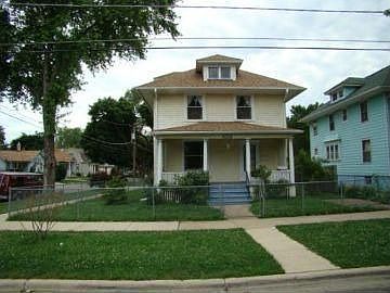 Large 4 square style home with 4 bedrooms close to downtown Elgin w/ a full partially finished bsmt, Hardwood floors, corner lot, detached 2.5 car gar, lrg front porch & fenced yard. Foreclosed Home.