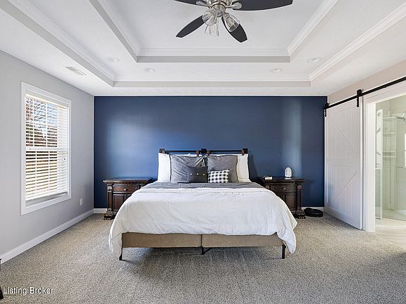 - Description: Huge walk-in; Sliding barn doors; Trey ceiling