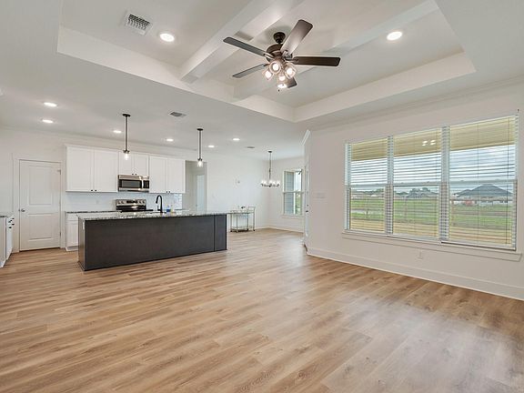 Granite countersDurable vinyl plank floorsCovered patioSpacious closetSoaking tubRaised ceilingsLarge island